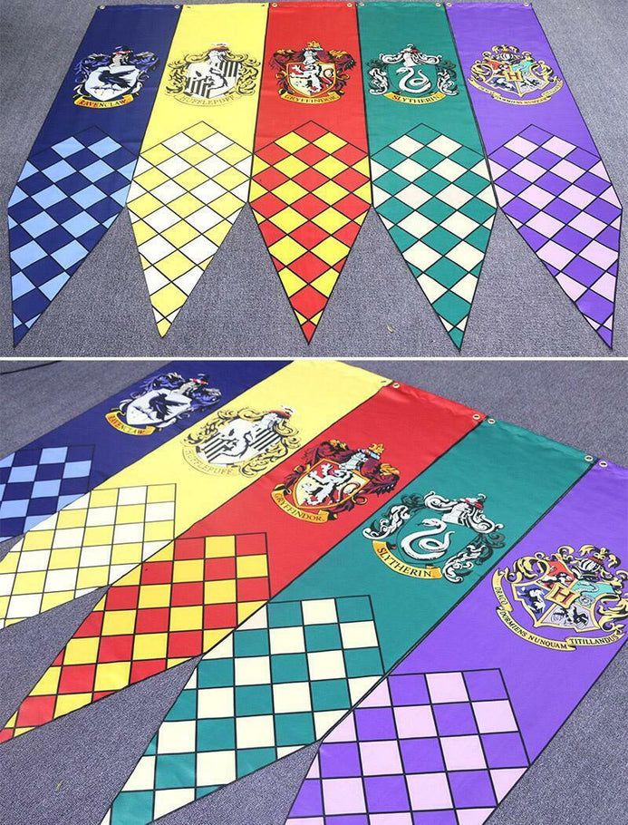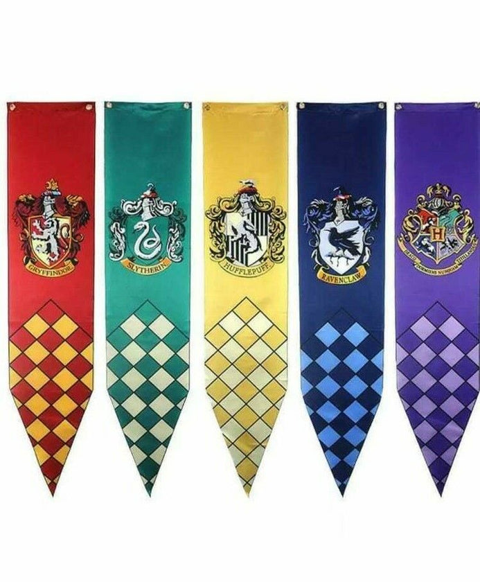 ¡Cada fan de Harry Potter necesita agitar sus banderas! Estas banderas Harry Potter son la adición mágica perfecta a tu profileo; ¡lleva tu casa Pottérica con orgullo! Las banderas miden aproximadamente 60 cm de ancho, ¡así que seguramente llamarán la atención cuando las sacas!