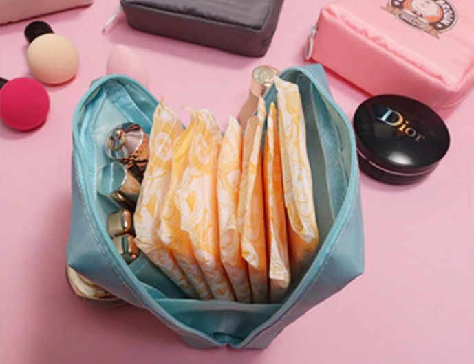 - Ideal para guardar servilletas sanitarias, tazas menstruales, almohadillas de lactancia, pañales, y también se puede utilizar para organizar joyas, tarjetas de crédito, etc.