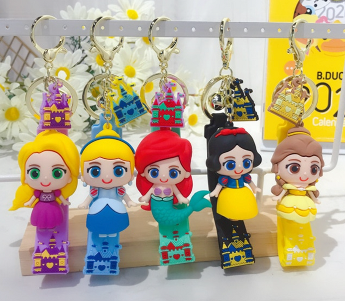 Bonitos Llaveros de las diferentes princesas Disney, estarás viviendo un cuento de hadas con ellas, llévalas esta encantadoras princesas contigo ¡Mantén tu colección con tus princesas Disney favoritas: Blancanieves, Cenicienta, Ariel y Bella.