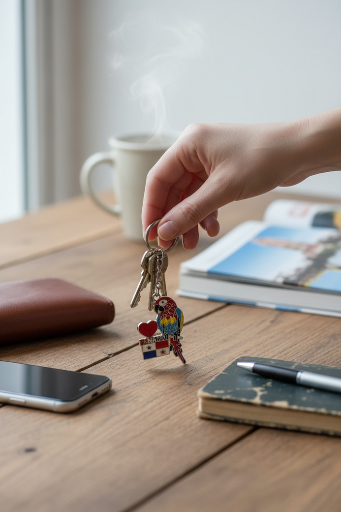 Llavero temático que celebra la belleza de la guacamaya, ave icónica de Panamá. Diseñado con detalles coloridos que capturan los vibrantes tonos rojos, azules y amarillos de esta majestuosa especie. Perfecto para llevar contigo un pedazo de la naturaleza panameña. Ideal como recuerdo personal o regalo para quienes aman la fauna local. Accesorio práctico y significativo que refleja el orgullo por nuestro patrimonio natural.