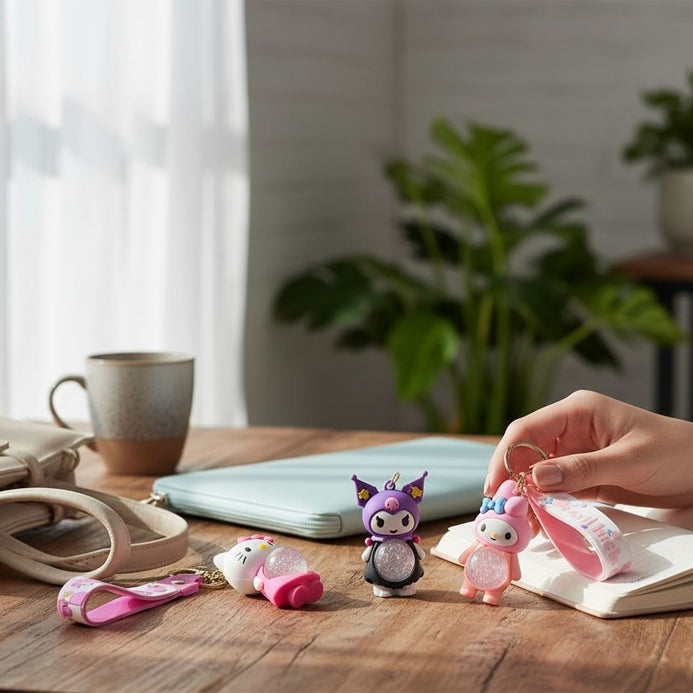 Llaveros Sanrio iluminados que brillan en la oscuridad. Estos accesorios prácticos cuentan con luces LED integradas que facilitan encontrar tus llaves al instante. Diseñados con personajes Sanrio adorables en colores vibrantes, son tanto funcionales como decorativos. La batería de larga duración garantiza uso prolongado. Perfecto para niños y adultos que buscan un toque de diversión y utilidad en sus accesorios diarios.