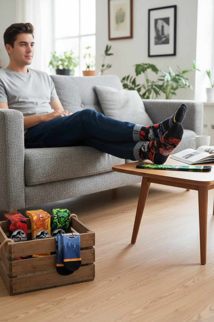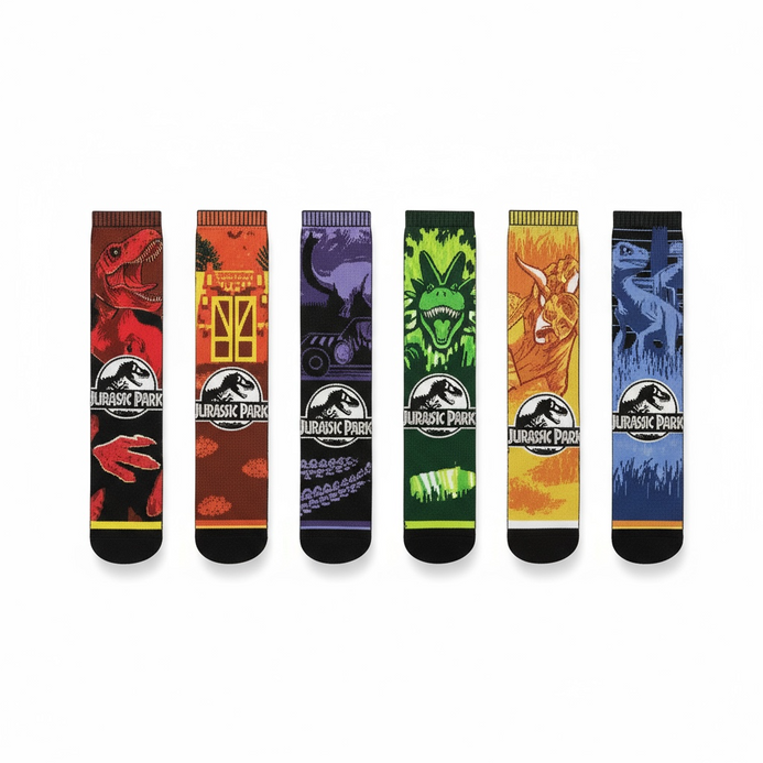 Estas medias inspiradas en Jurassic Park combinan comodidad y estilo para los fanáticos de la icónica saga. Con diseños que representan elementos clásicos de la película, ofrecen un ajuste cómodo y materiales de calidad para uso diario. Perfectas para mostrar tu pasión por Jurassic Park de manera sutil y original.