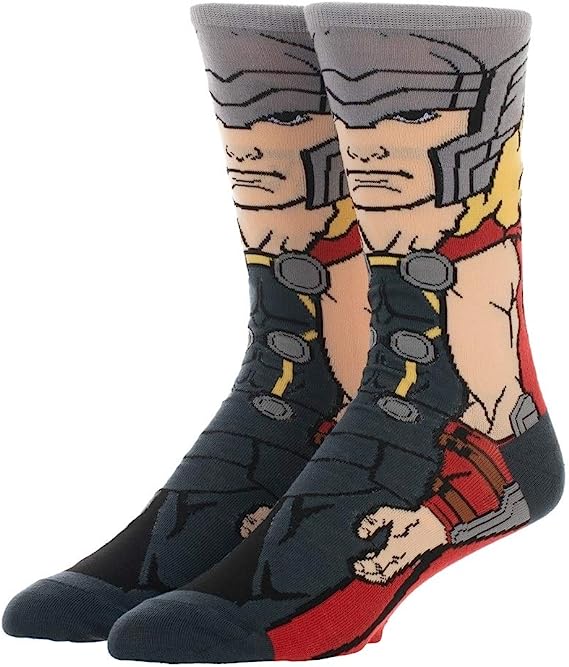 - Emocionantes calcetines de personajes de cómic para adultos, ropa de superhéroe Thor Cool. Grandes calcetines coloridos de superhéroes para hombres y mujeres; regalos de fiesta de superhéroes