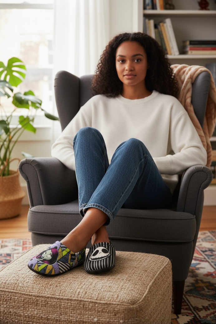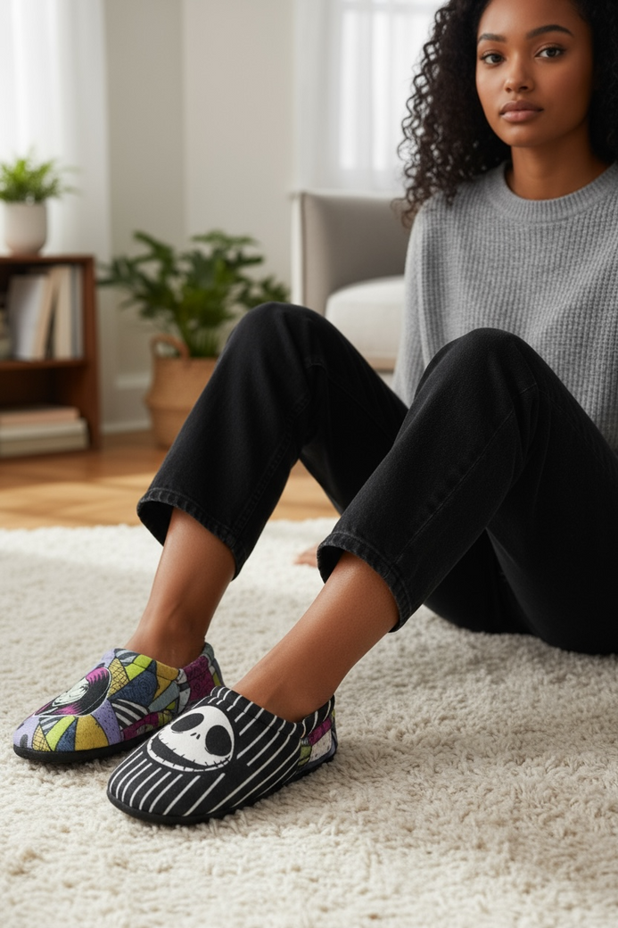 Disfruta de la comodidad y el estilo único con las pantuflas de Jack Skeleton, inspiradas en "Nightmare Before Christmas". Perfectas para mantener tus pies calientes, estas pantuflas combinan diseño original con un ajuste confortable, ideal para el hogar o días relajados. Un regalo ideal para fans de la película que buscan un toque divertido y práctico en su calzado de casa.