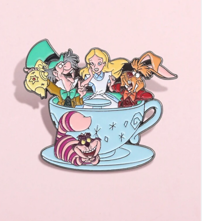 Acompaña a Alicia en sus aventuras en este hermoso pin del país de las maravillas. Lleva contigo el encanto de esta historia a donde quiera que vayas y haz que tu día sea aún más mágico. ¡Un accesorio perfecto para cualquier amante de Alicia en el país de las maravillas!