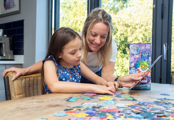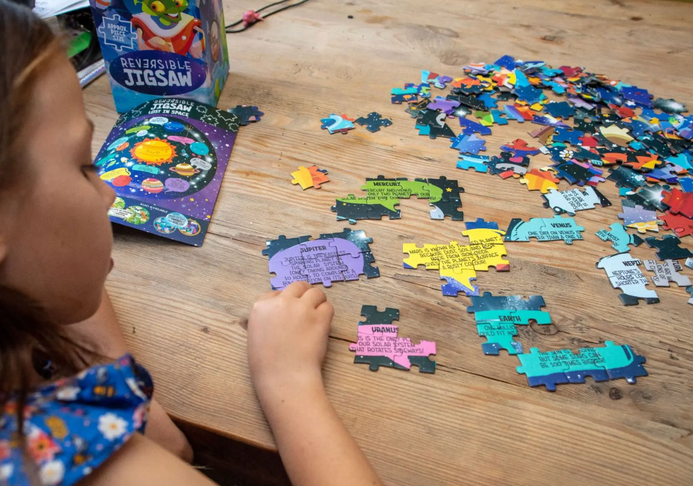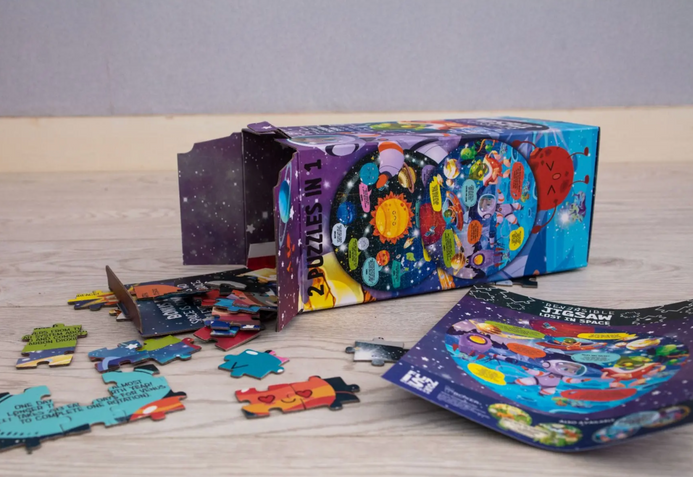 - DE PLANETAS A EXTRANJEROS EN EL VOLTEO DE UN ROMPECABEZAS : con dos lados del rompecabezas para completar, uno con datos sobre el sistema solar y el otro con información extraterrestre sobre criaturas del espacio exterior, ¡hay mucho por explorar!