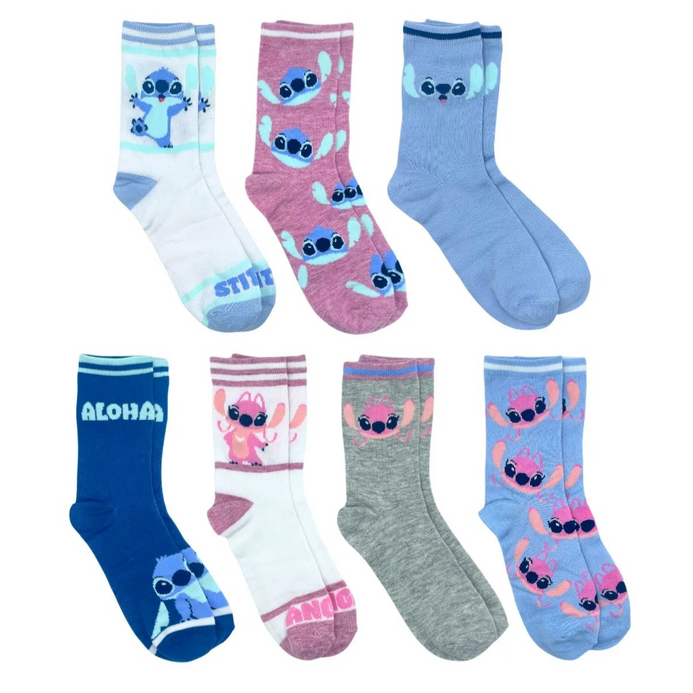 Completa tu semana con este adorable set de 7 pares de medias Stitch. Cada par presenta diseños divertidos inspirados en el querido personaje de Disney, perfectos para combinar con tu atuendo diario. Confeccionadas con materiales suaves y duraderos para mantener tus pies cómodos durante todo el día.