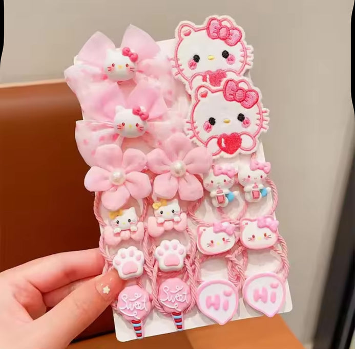 Añade un toque adorable a tu look con este set de vinchas de Hello Kitty. El set incluye varias vinchas con diseños encantadores de la famosa gatita, perfectas para cualquier ocasión. Hechas de materiales suaves y cómodos, son ideales para mantener el cabello en su lugar con estilo. ¡Un accesorio imprescindible para las fans de Hello Kitty que buscan funcionalidad y ternura en su día a día!