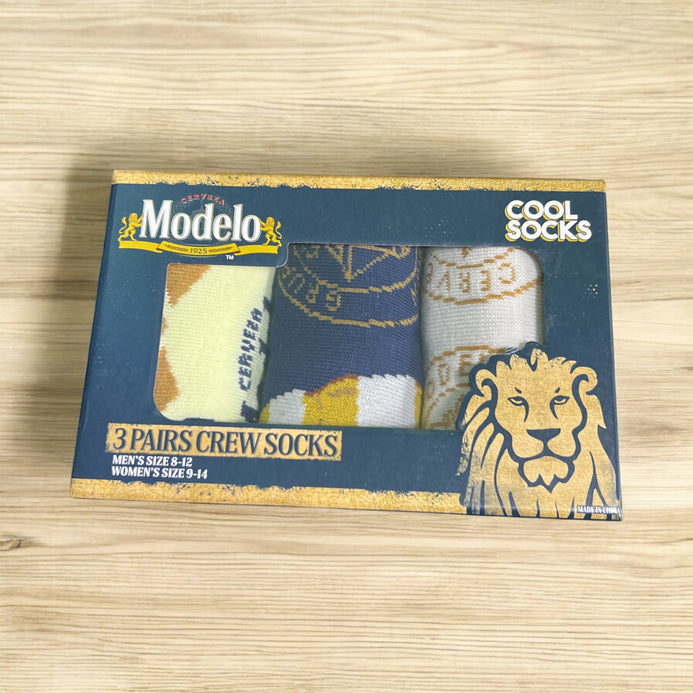 Ya sea para regalar o para usar en casa, este set de 3 pares de medias con diseños de cerveza Modelo es perfecto para los amantes de la cerveza. Con materiales de alta calidad, tus pies estarán siempre cómodos y con estilo. ¡Hazte con este set y demuestra tu pasión por la cerveza!