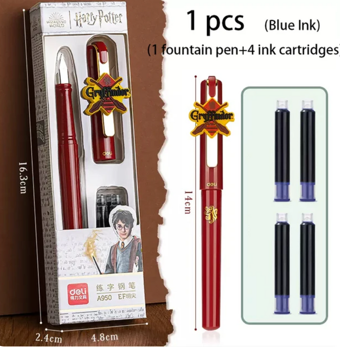 ¡Encantará a cualquier fan de Harry Potter! Este set incluye cuatro plumas estilográficas, cada una representando una casa de Hogwarts. Con sus detalles únicos y elegante presentación, este set es perfecto para coleccionar o usar en la escritura diaria. ¡Escribe tus propias historias mágicas con estilo!