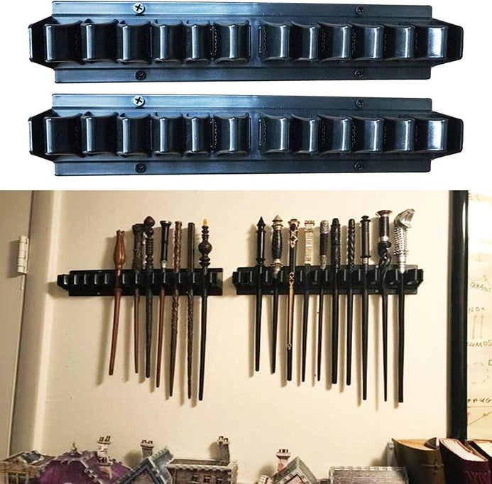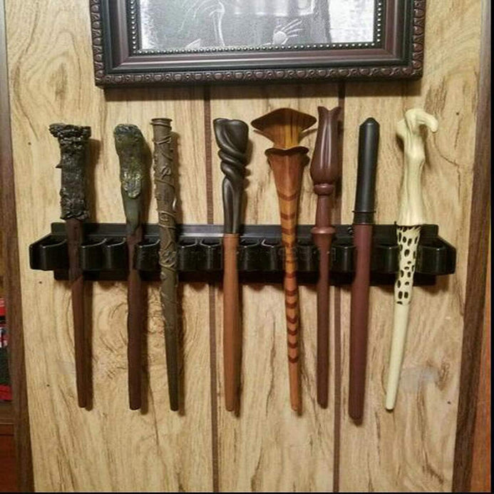 Mantén tus varitas de Harry Potter organizadas y a mano con nuestro soporte de pared. Diseñado para mantener hasta 10 varitas de manera segura y elegante, este soporte es perfecto para cualquier fan de la saga. Ahorra espacio y exhibe tus varitas con orgullo. ¡Haz que tu colección de varitas sea el centro de atención en cualquier habitación con nuestro soporte de pared!