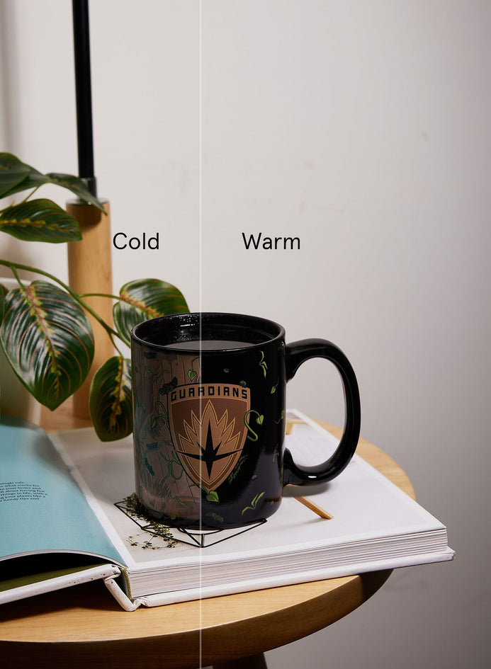 Disfruta de tu taza favorita de Groot que cambia de color. Esta taza está hecha con material de alta calidad que soporta altas temperaturas sin dañar su color. Disfruta de tu taza de Groot con un elegante cambio de color cuando se calienta.