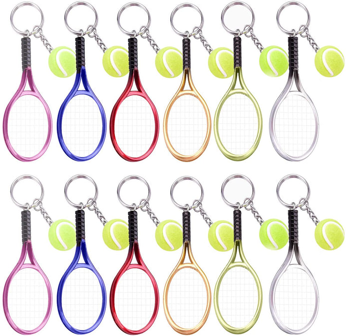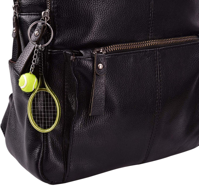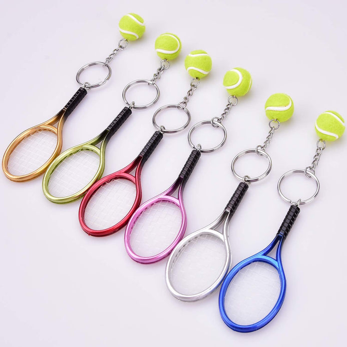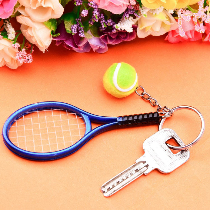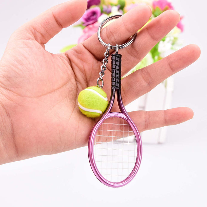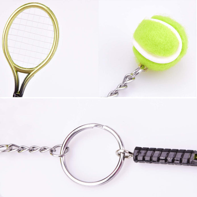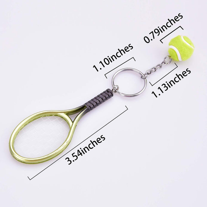 - Tamaño: el llavero de tenis es de 1.1 in de diámetro, el diámetro de la pelota de tenis es de 0.8 in y la raqueta es de aprox. 3.5 in de longitud total