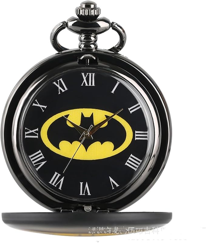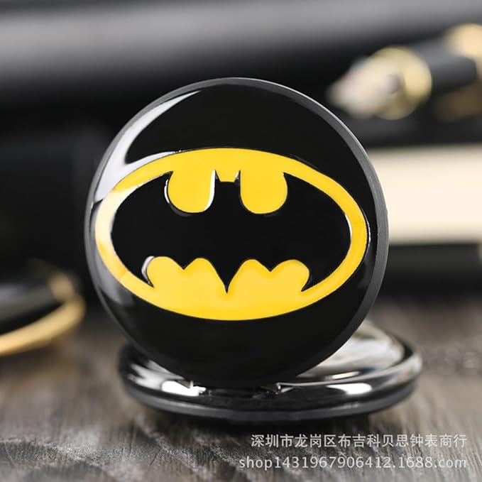 Reloj de bolsillo con diseño temático de Batman, perfecto para coleccionistas y fanáticos del superhéroe. Cuenta con una carátula detallada que presenta el icónico logo del murciélago y detalles característicos del personaje. Ideal para llevar en el bolsillo de tu chaqueta o pantalón, combinando funcionalidad con estilo. Un accesorio único que refleja tu pasión por el universo de DC Comics. Excelente opción de regalo para cualquier ocasión.