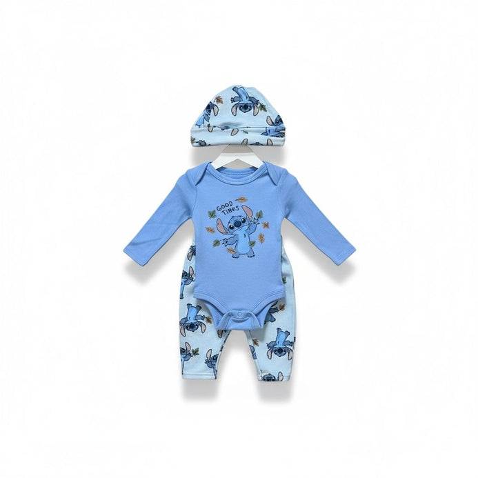 Conjunto Body Pantalon y Gorro para Bebe Stitch