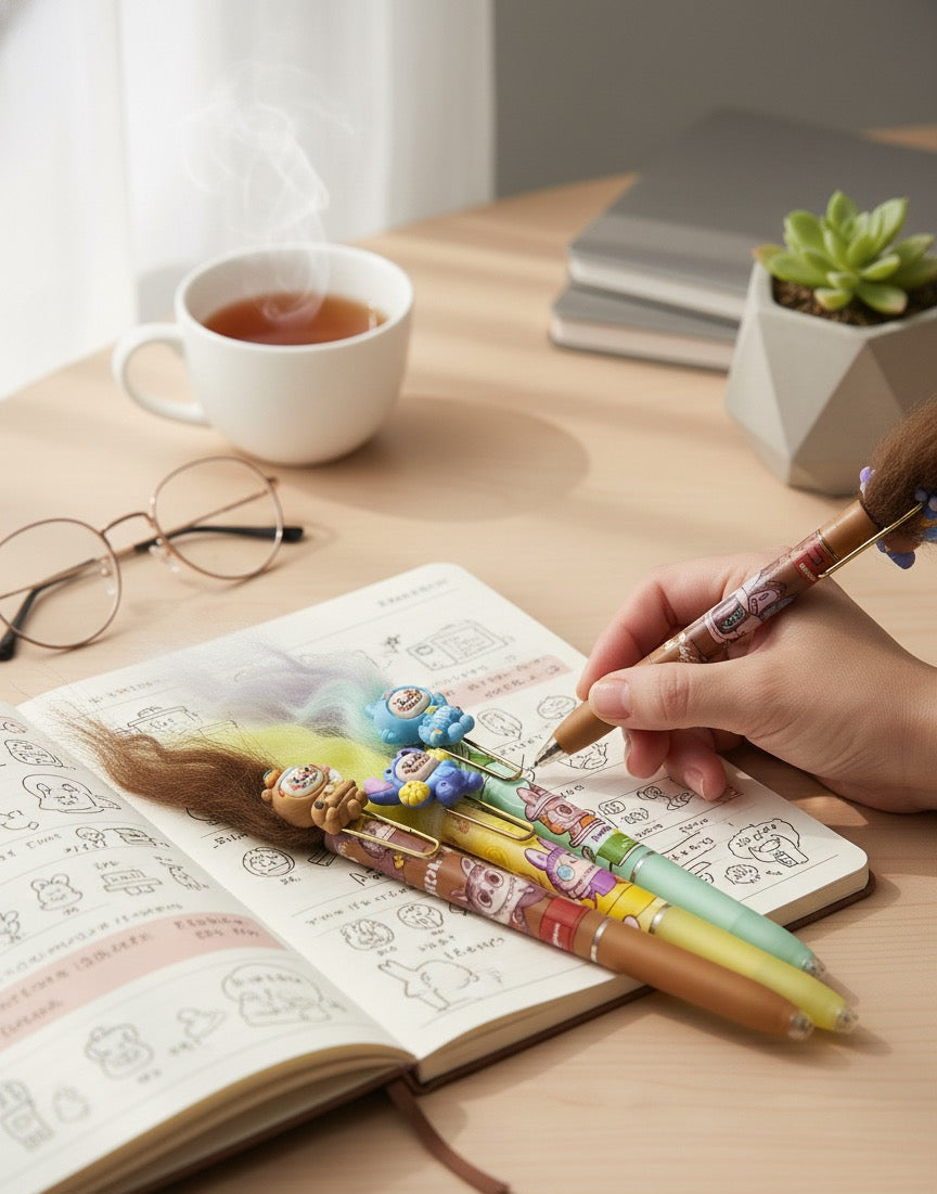 ¡Escribe con estilo y diversión usando nuestros bolígrafos con pelos Labubu! Estos bolígrafos vienen en un set de colores vibrantes y cuentan con una divertida figura de Labubu en la parte superior. Agrega un toque de creatividad a tus notas y escritos con estos originales bolígrafos. ¡Haz que escribir sea más emocionante con los bolígrafos con pelos Labubu!