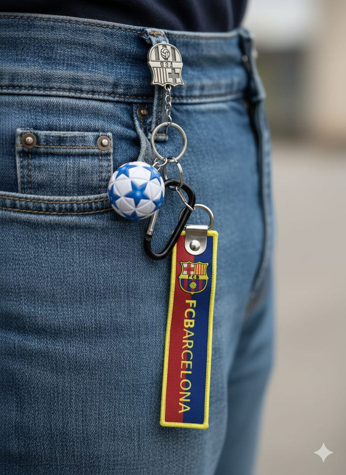 Llavero Completo inspirado en Barcelona, perfecto para llevar tus llaves con estilo. Diseñado con detalles del Club, combina funcionalidad y un toque de identidad. Ideal como regalo para fanáticos, coleccionistas o amantes de Barcelona. Resistente y duradero, se adapta a cualquier bolso o mochila.