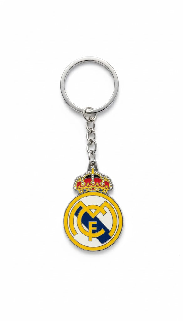 Llavero con el icónico escudo del Real Madrid. Perfecto para llevar contigo las tradiciones del club más ganador de Europa. Fabricado con materiales duraderos, este accesorio combina funcionalidad y pasión madridista. Ideal para aficionados que desean mostrar su lealtad al equipo blanco en todo momento. Un regalo clásico que nunca pasa de moda.