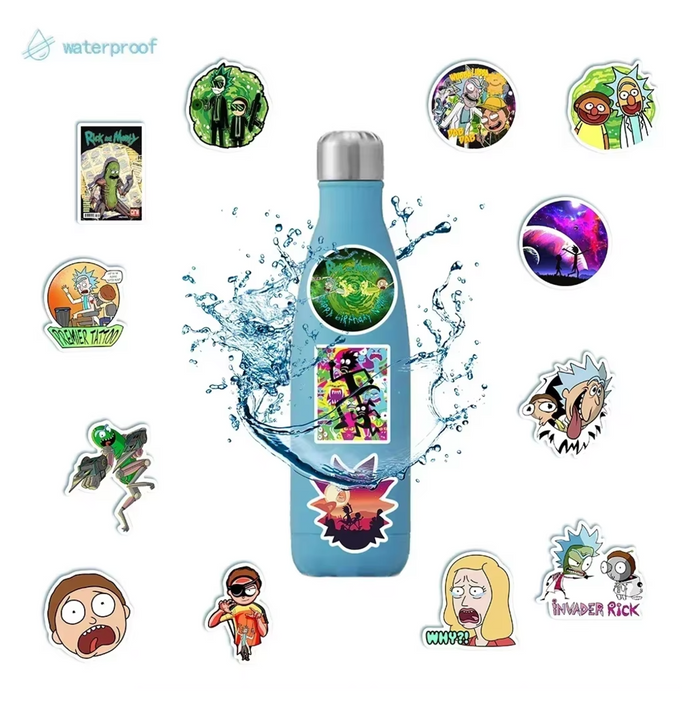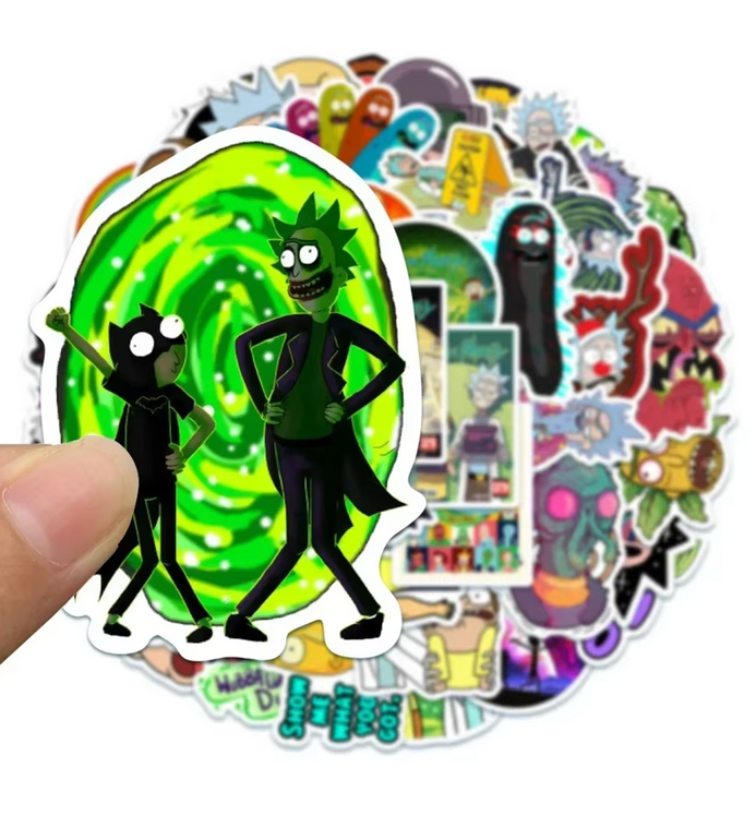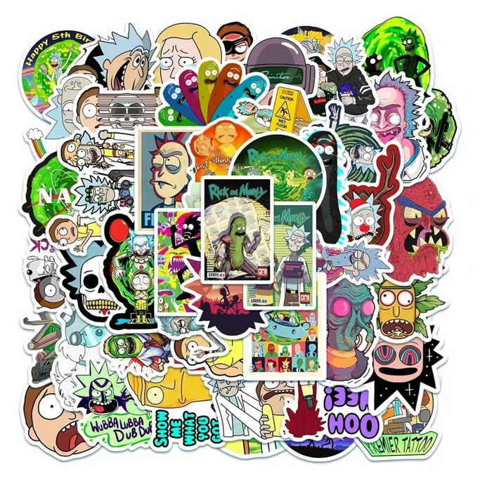 Decora tus cosas con estos stickers de Rick and Morty! Con diseños divertidos y emblemáticos de la serie, estos adhesivos son perfectos para personalizar tu laptop, botella, celular o cualquier objeto. Hechos de material resistente, ¡te acompañarán en todas tus aventuras interdimensionales! Ideal para los fans que quieren llevar un pedazo del multiverso a todas partes.