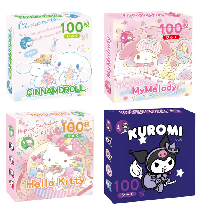 Set de 100 stickers de Sanrio con los personajes más adorables como Hello Kitty, My Melody y más. Perfectos para decorar tus cuadernos, laptop, agenda o cualquier objeto personal. Con colores vibrantes y diseños encantadores, estos stickers son ideales para los fanáticos de Sanrio que quieren añadir un toque de ternura a todo. ¡Haz que todo lo que toques sea más bonito!