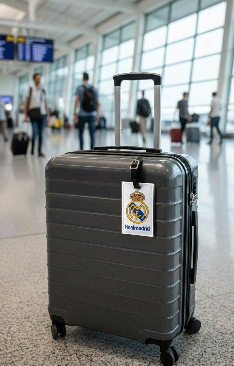 Identifica tu maleta al instante con este tag oficial del Real Madrid. Diseñado con los colores y escudo emblemático del club, este accesorio práctico se fija fácilmente a tu equipaje para evitar confusiones en aeropuertos y viajes. Resistente y duradero, es el complemento perfecto para cualquier aficionado merengue que viaja con estilo.