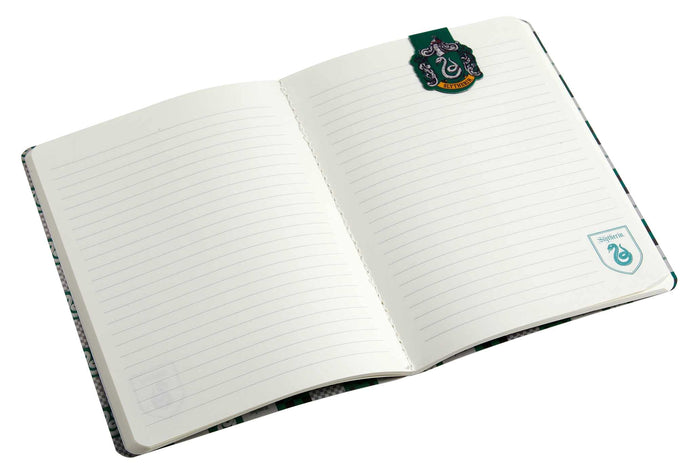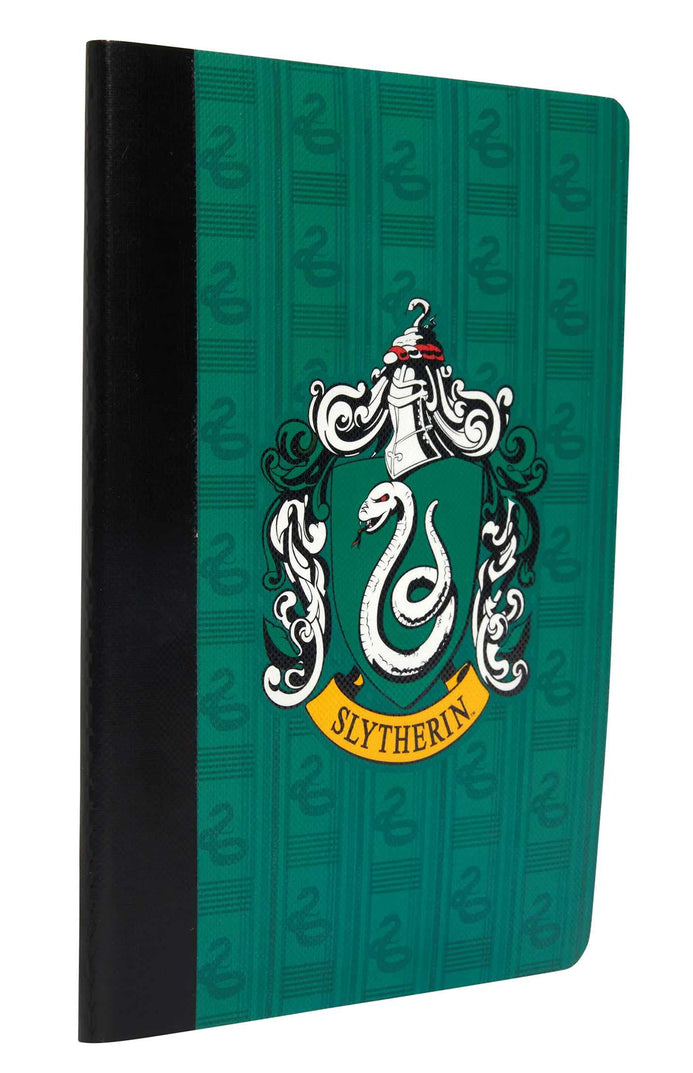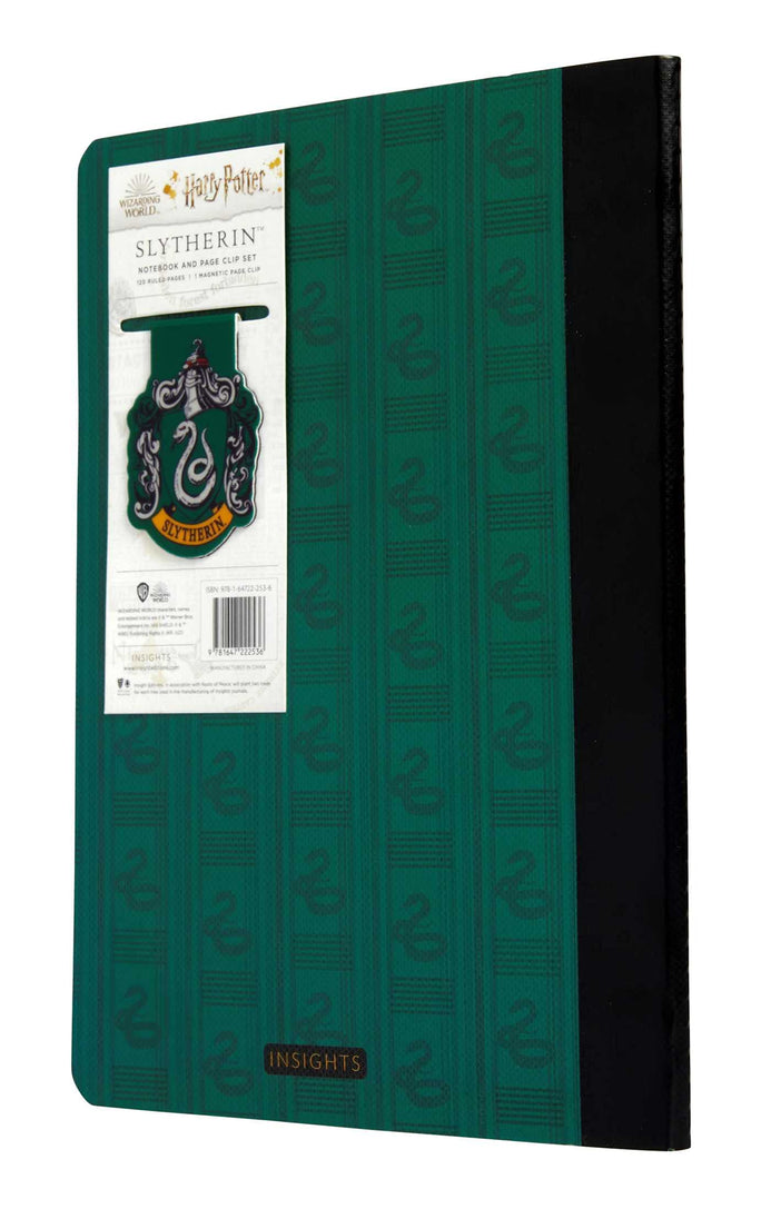 Muestre su orgullo por SLYTHERIN ™ con este cuaderno de composición y un juego de clips de página magnéticos, con el escudo de la serpiente y los colores de la casa SLYTHERIN ™.
