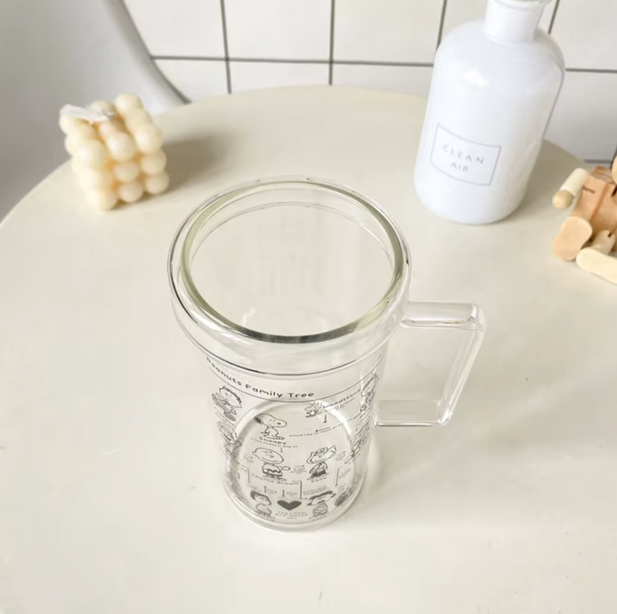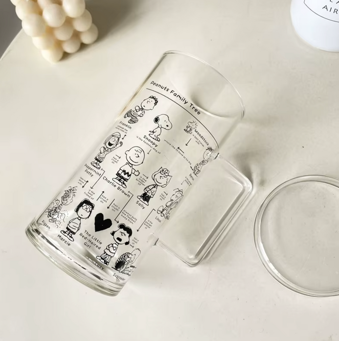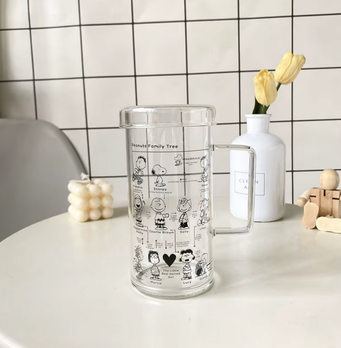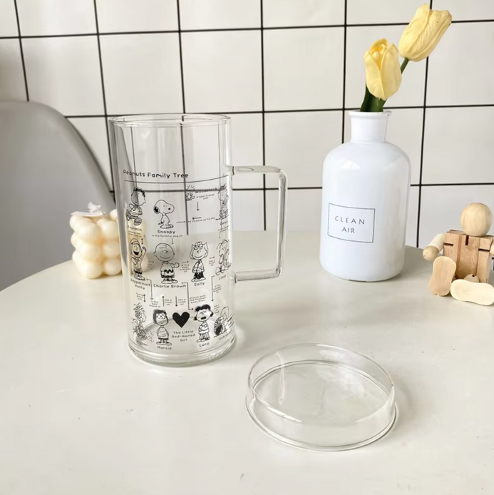 Disfruta tus bebidas con el toque adorable de Snoopy. Esta jarra de vidrio cuenta con un diseño encantador del famoso beagle y viene con una tapa para mantener tus bebidas frescas. Perfecta para los fanáticos de Peanuts y ideal para el día a día o como pieza de colección. ¡Haz que tu momento de bebida sea más divertido!