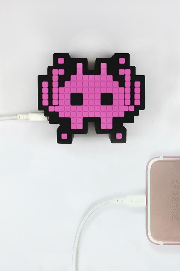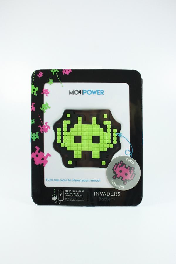 El cargador Invaders está equipado con una batería de 2600 mAh y carga cualquier teléfono inteligente iOS y Android.