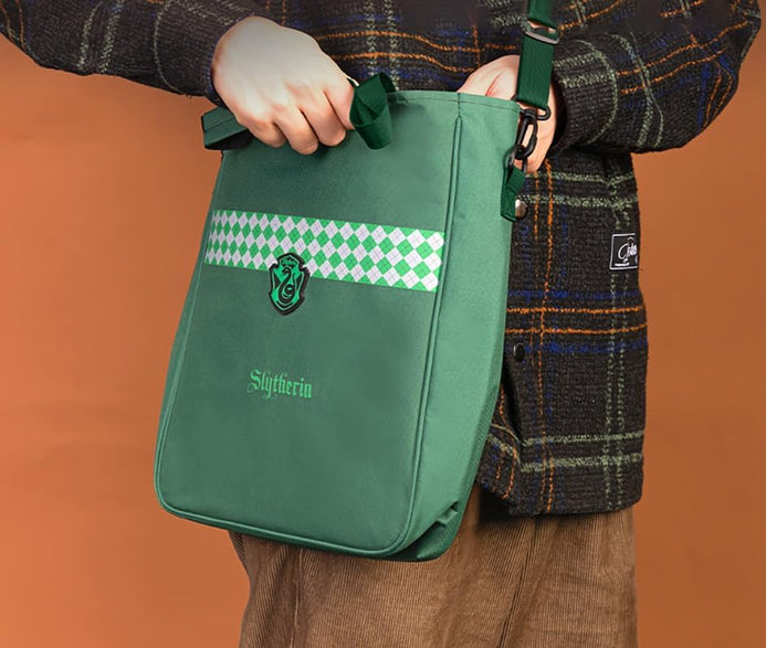 Lleva tus pertenencias favoritas en este bolso de Harry Potter con diseño de las casas de Hogwarts. Confeccionado en material resistente y espacioso para guardar todo lo que necesitas en tus aventuras mágicas. ¡Demuestra tu lealtad a tu casa con estilo y comodidad!