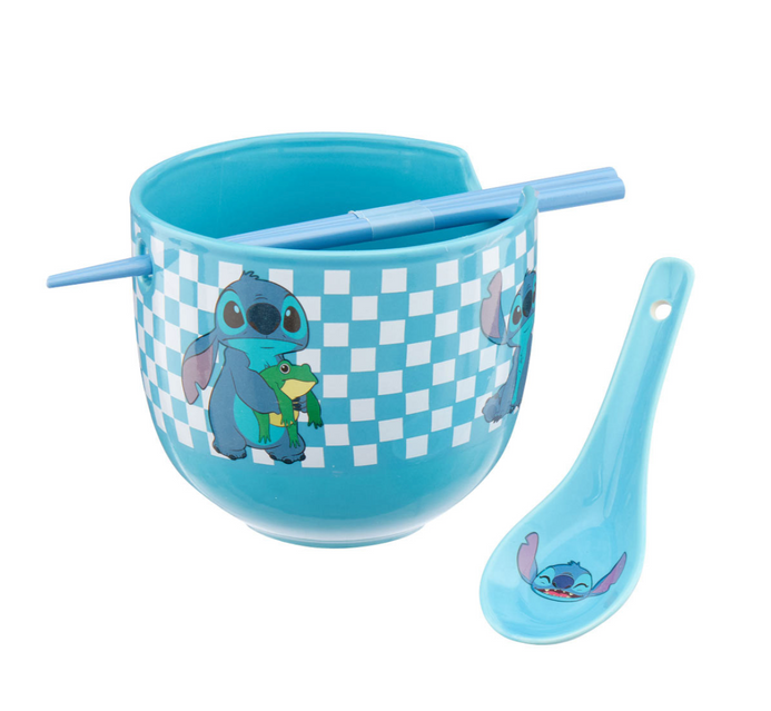 Bowl Noodle Combo Stitch: Bowl de Stitch inspirado en el personaje de Lilo & Stitch, ideal para disfrutar de tus comidas favoritas. Este bowl tiene un diseño divertido de Stitch y está acompañado de un combo con accesorios temáticos, como palillos o una tapa decorada. Perfecto para los fanáticos de la película, ideal para servir sopas, fideos o cualquier comida que prefieras, ¡todo con el toque único de Stitch! Hecho de material duradero, es una opción práctica y adorable para tu cocina.