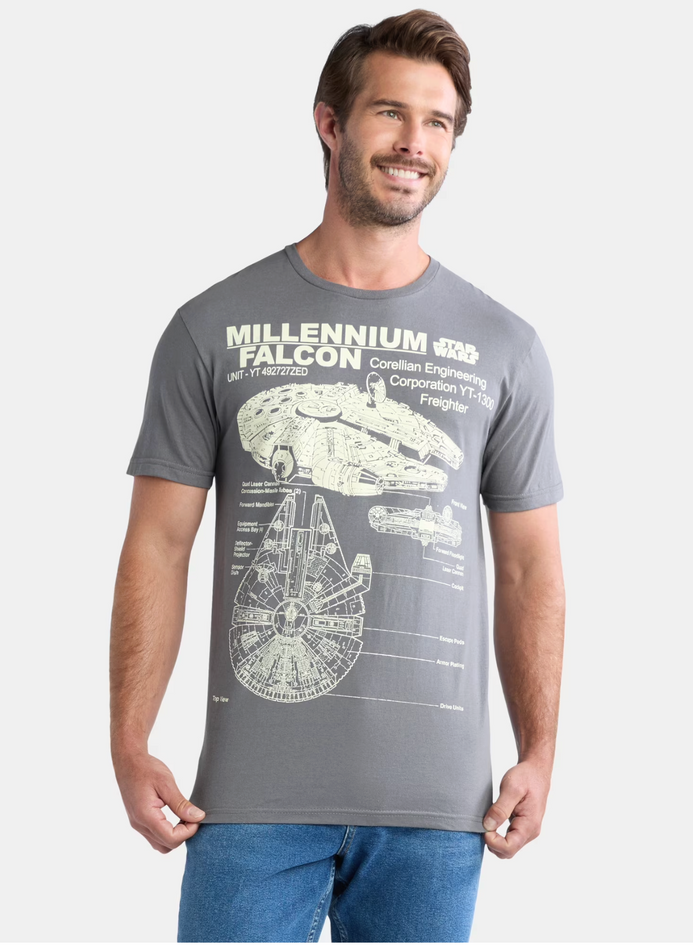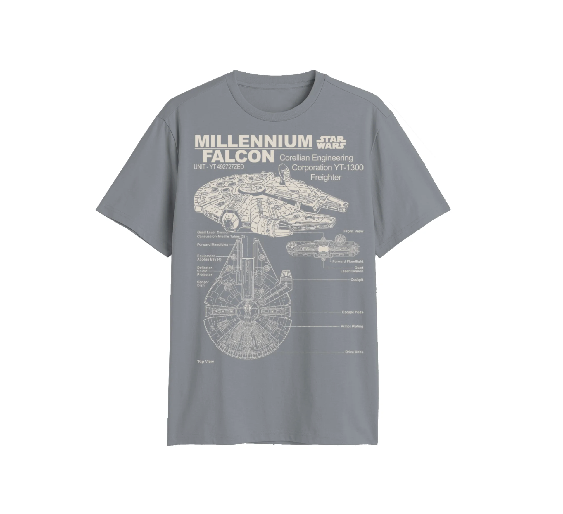 Descubre la colección Star Wars con franela, suéter y camiseta inspirados en el icónico Millenium Falcon. Diseños exclusivos que combinan comodidad y estilo para los fanáticos de la saga. Perfectos para usar en cualquier ocasión y mostrar tu pasión por Star Wars con calidad y autenticidad.