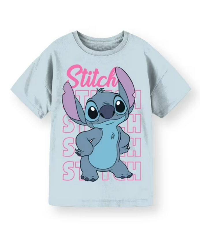 Camiseta Stitch Blue Wave diseñada específicamente para niños, con estampado exclusivo del personaje sobre un fondo de olas azules. Confeccionada con tela suave y