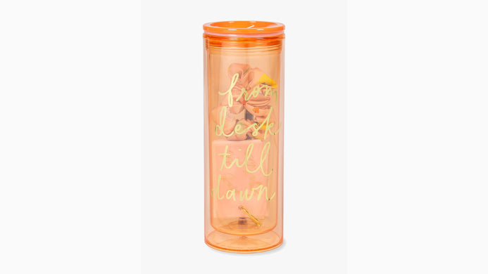 - La copia de la taza térmica de 16 oz dice "desde el escritorio hasta el amanecer".