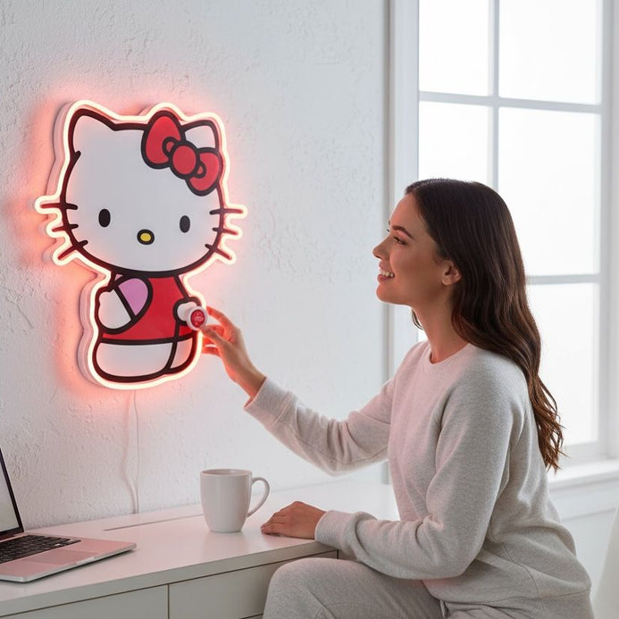 Esta lámpara acrílica con diseño de Hello Kitty combina luces de neón para crear un ambiente cálido y divertido. Ideal para decorar habitaciones infantiles o espacios que buscan un toque de originalidad y ternura. Su luz suave y llamativa ofrece una iluminación atractiva sin ser molesta, perfecta para crear ambientes acogedores y con estilo. Fácil de usar y con un diseño moderno que encantará a fans de Hello Kitty de todas las edades.