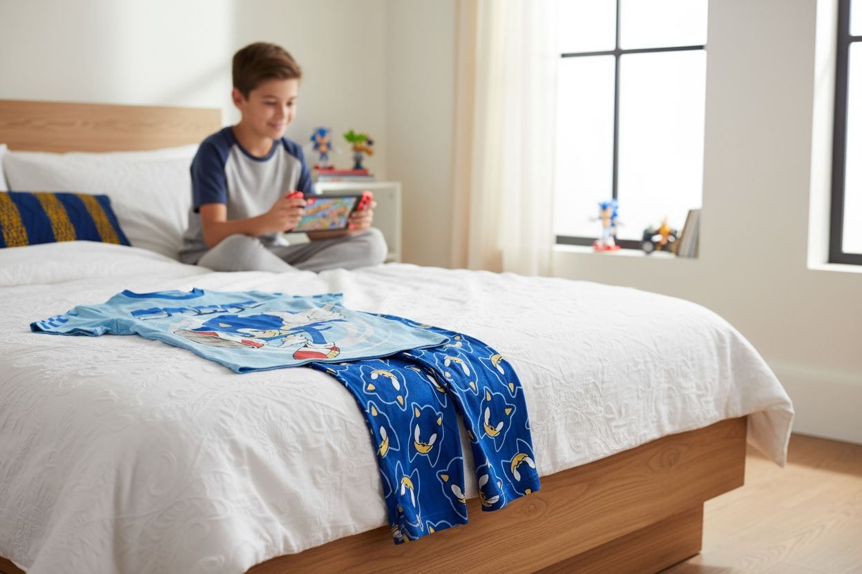 Conjunto de pijama infantil inspirado en Sonic, el icónico erizo azul. Perfecto para que los pequeños fans disfruten de comodidad y estilo a la hora de dormir. Fabricado con materiales suaves y transpirables, este set incluye playera y pantalón con diseños vibrantes que capturan la esencia del personaje. Ideal para regalos o para completar el guardarropa nocturno de cualquier niño que ame las aventuras de Sonic. Garantiza noches cómodas y divertidas.