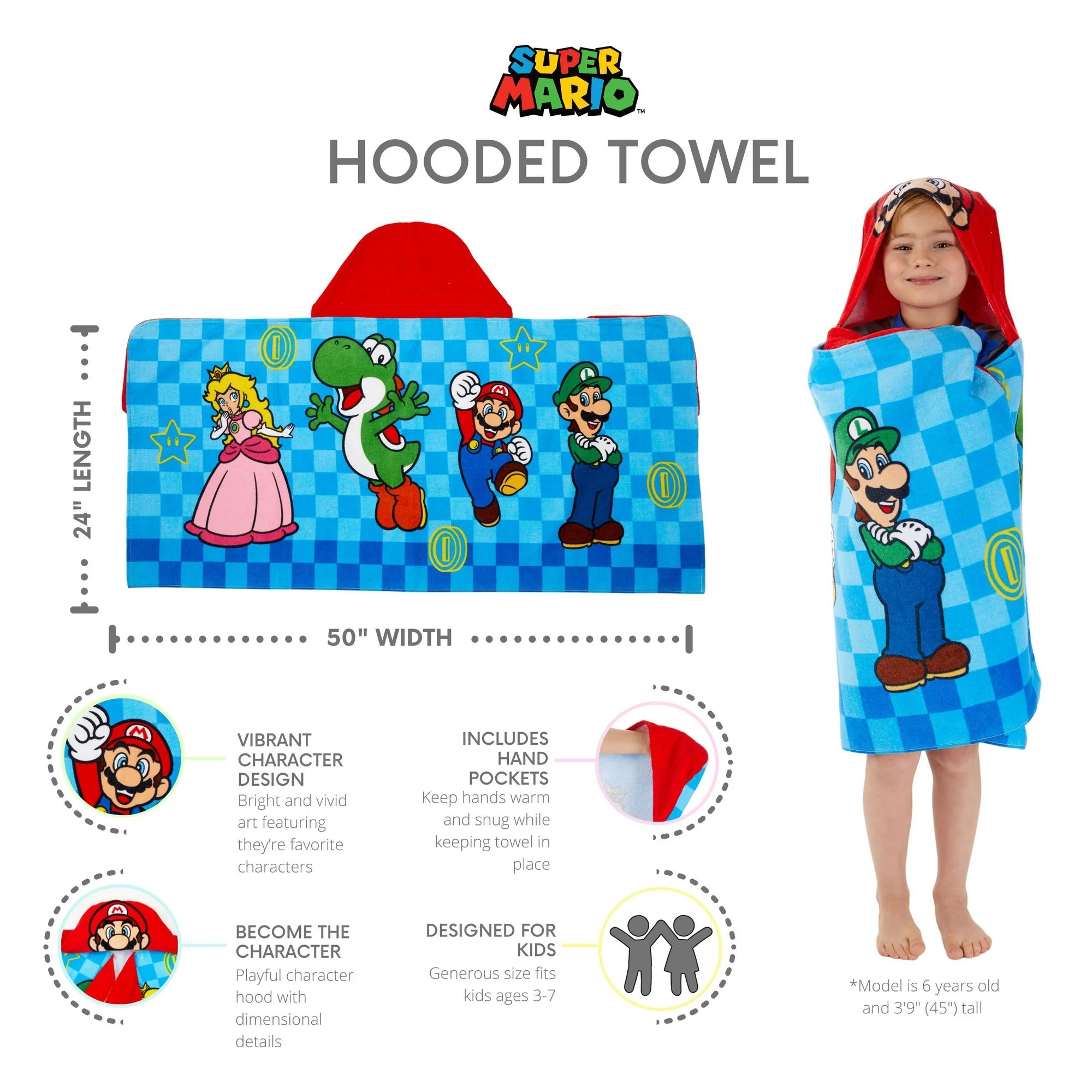 Esta toalla con capucha de Super Mario es perfecta para los niños después del baño o la piscina. Su diseño divertido con el personaje clásico de videojuegos hace que la hora de secarse sea más entretenida. La capucha mantiene la cabeza seca y abrigada, mientras que la tela absorbente proporciona comodidad y rapidez al secado. Ideal para los pequeños fanáticos de Super Mario que disfrutan de la aventura incluso al salir del agua.