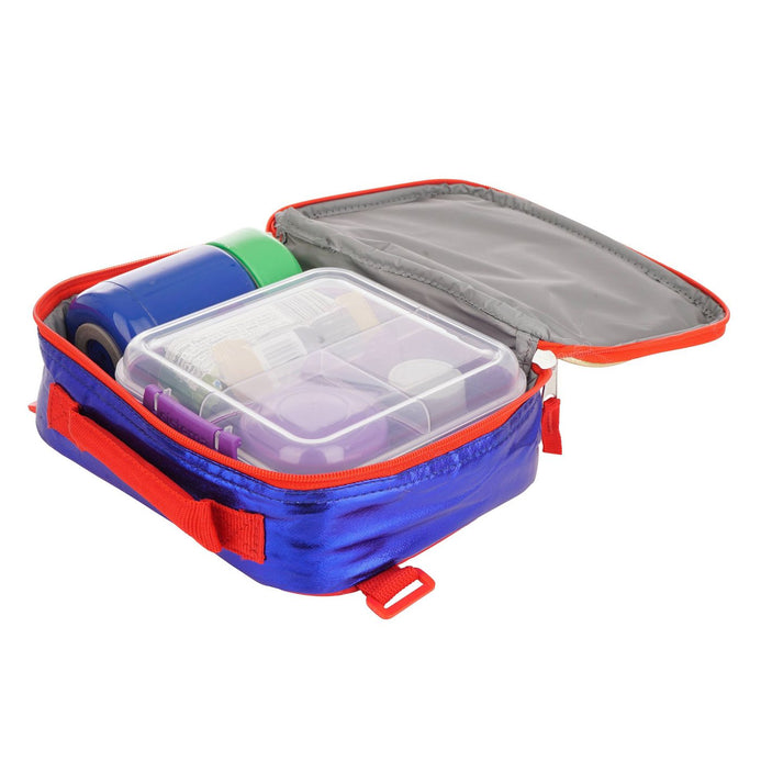 Ella es la Súper HÉROE femenina favorita de todos; ella es fuerte, valiente y hermosa… .. ¡Ella es la Mujer Maravilla! Y sus fans ahora pueden llevar nuestro juego de 7 piezas Shiny a la escuela, mientras viajan o simplemente se divierten porque este juego está lleno de características y piezas increíbles. La mochila está diseñada con un material metálico brillante e incluye los colores y logotipos de la firma WW tanto impresos como con apliques. La bolsa de almuerzo extraíble también presenta un estampado de estrellas metálicas y el logotipo de WW, en un brillo metálico dorado perfecto para ese increíble efecto pop. ¡Pero no es eso! Este juego viene con cosas más asombrosas: una bolsa de cincho, estuche para artilugios, bolsa de hielo de 4 ", scrunchie y una botella de agua azul a juego, todo en los colores y el diseño característicos de WW. Así que recuerda, este juego de WW es tan feroz como la mujer y el héroe. ¡ella es!
