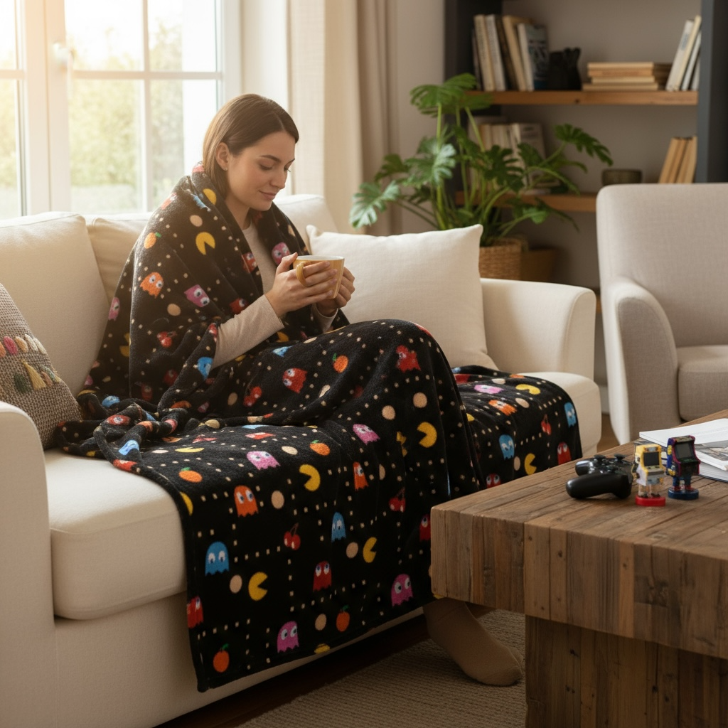 Disfruta de la comodidad y nostalgia con la Manta Grande Pac Man, perfecta para mantenerte abrigado mientras rememoras el clásico juego. Su tamaño amplio la hace ideal para el sofá o la cama, ofreciendo suavidad y calidez durante todo el año. Un complemento divertido y práctico para los fanáticos de los videojuegos retro.