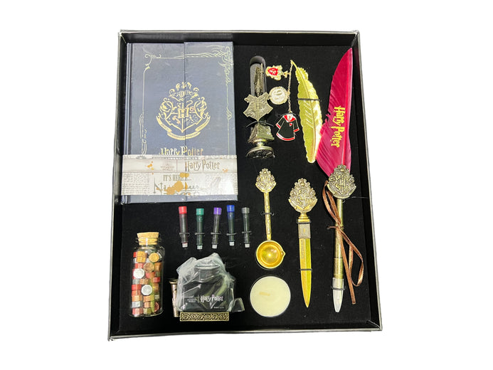 Este set de regalo de Harry Potter incluye una libreta para escribir tus hechizos, un pin para lucir tu casa, un bolígrafo y un llavero para llevar contigo a Hogwarts y un marca libro para no perder tu lugar en tus aventuras mágicas. ¡Ideal para cualquier fan de Harry Potter!