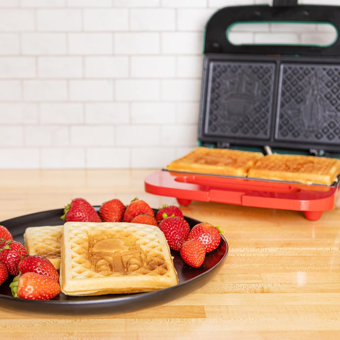 - BOBA FETT & SLAVE I WAFFLE MAKER – Hecho Boba Fett y Slave 1 gofres en casa. Vierte la masa, baja la tapa, y antes de que te des cuenta, hay dos gofres, uno de Boba y uno de su icónica nave espacial, listos para mantequilla y jarabe.