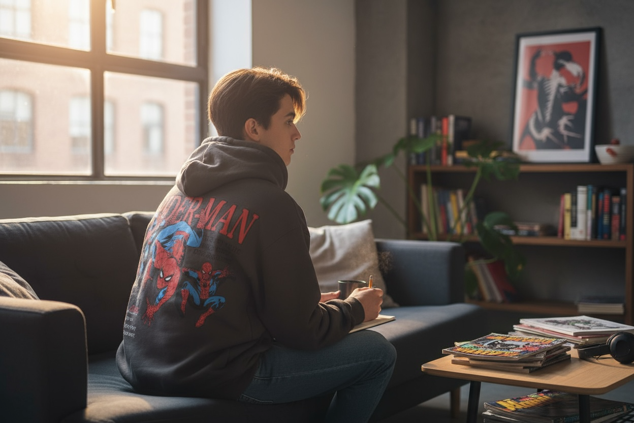 Esta sudadera de Spiderman combina estilo y comodidad, perfecta para los fanáticos del emblemático superhéroe. Fabricada con materiales suaves y resistentes, ofrece calidez ideal para cualquier ocasión casual. Su diseño llamativo con el icónico logo de Spiderman añade un toque único a tu look diario. Ideal para niños y adultos que quieren mostrar su afición con comodidad y estilo.