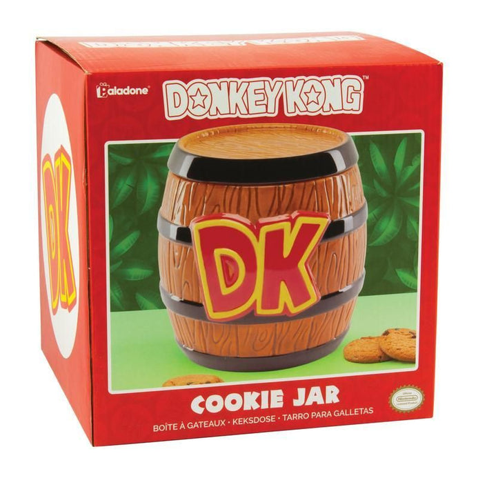 Galletero o caramelera con el icónico diseño de Donkey Kong, perfecto para los fanáticos de la franquicia clásica de Nintendo. Este contenedor versátil mantiene tus galletas, caramelos o snacks frescos mientras añade un toque nostálgico a tu cocina o colección. Ideal como regalo para coleccionistas y amantes de los videojuegos retro. Combina funcionalidad y estilo fan-centric en un solo producto.