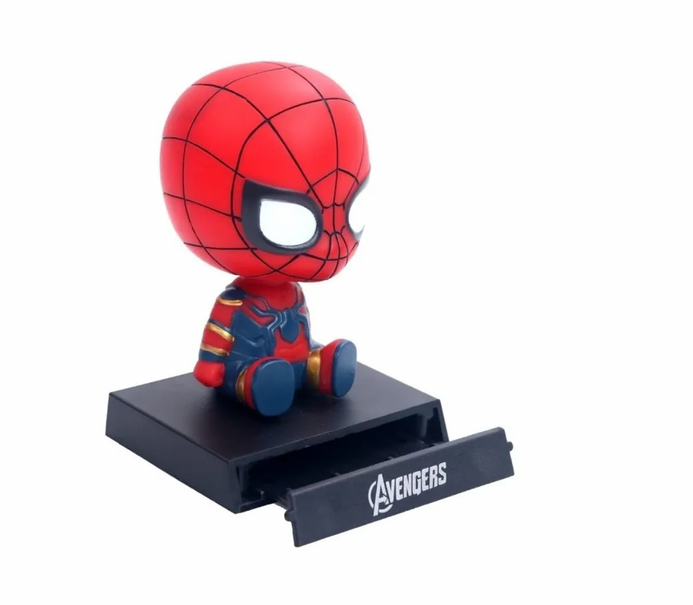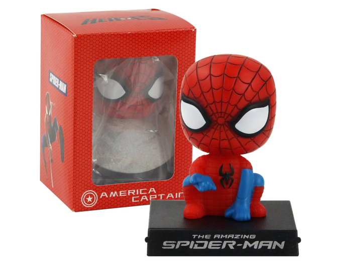El soporte para teléfono móvil Spiderman se puede colocar en el coche, es uno muñeco decorativa con cabeza temblorosa.
