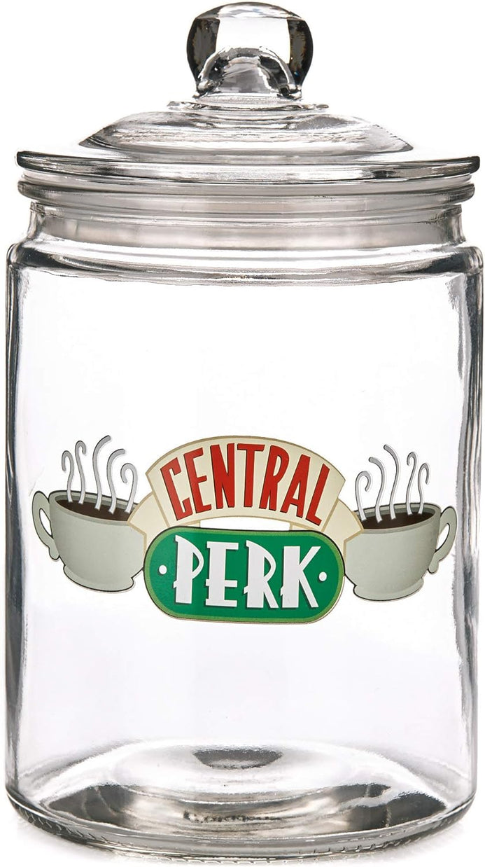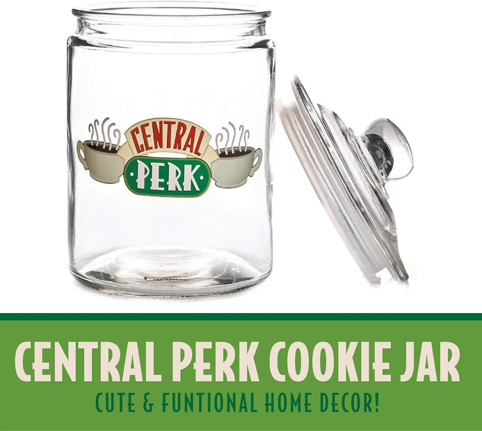 - Práctico y adorable: este tarro de cristal para galletas con tapa cuenta con el logotipo de Central Perk. Es la decoración perfecta para tu cocina y útil para almacenar galletas, aperitivos, dulces, golosinas y mucho más.