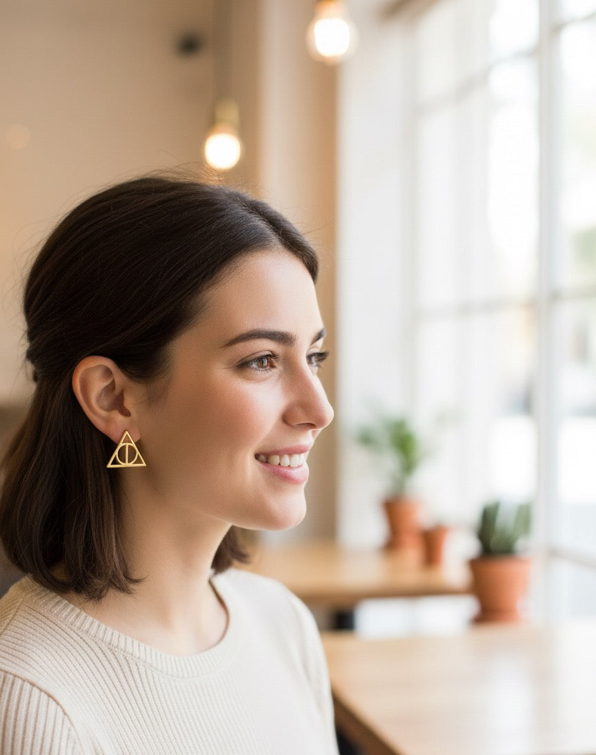 Luce el símbolo icónico de las Reliquias de la Muerte con estos elegantes aretes inspirados en el universo de Harry Potter. Diseñados para fans devotos, cada par captura la esencia mística de la saga con detalles precisos y acabado de calidad. Perfectos como regalo para coleccionistas o como complemento diario que expresa tu pasión por la magia. Material resistente y cómodo para usar en cualquier ocasión.