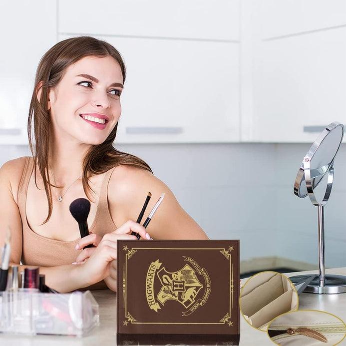 ¡Lleva contigo la magia de Harry Potter en esta cosmetiquera, bolso y neceser! Con un diseño inspirado en el emblemático libro de Hogwarts, podrás guardar tus cosméticos y artículos de aseo en un solo lugar. ¡Organización y estilo en uno!