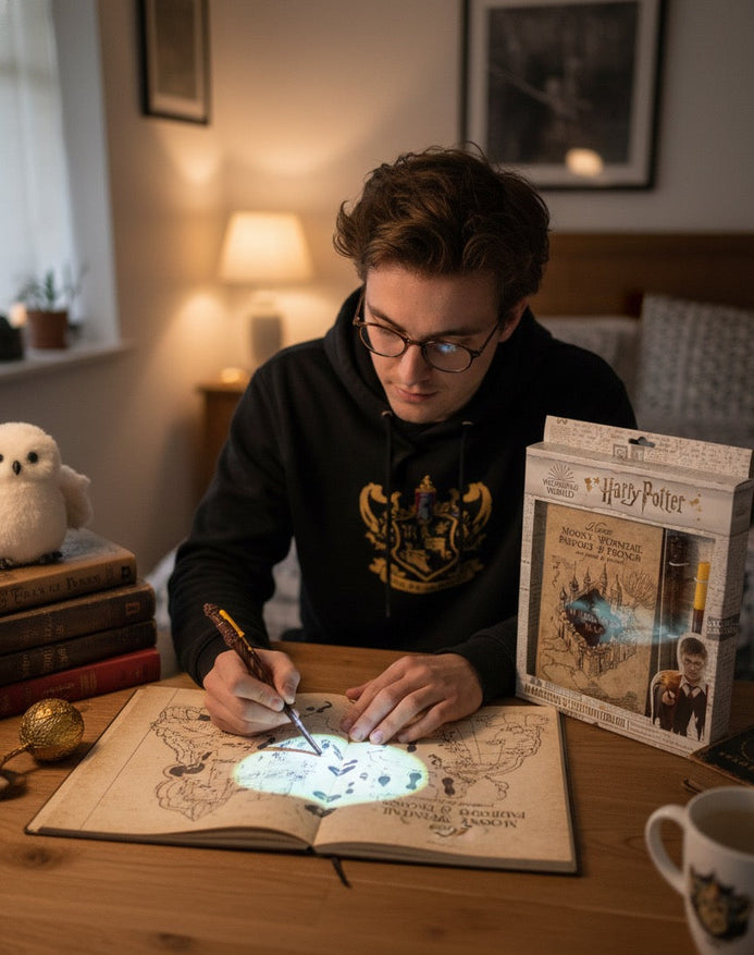Libreta Magica Mapa del Merodeador con Varita de Luz Violeta Harry Potter