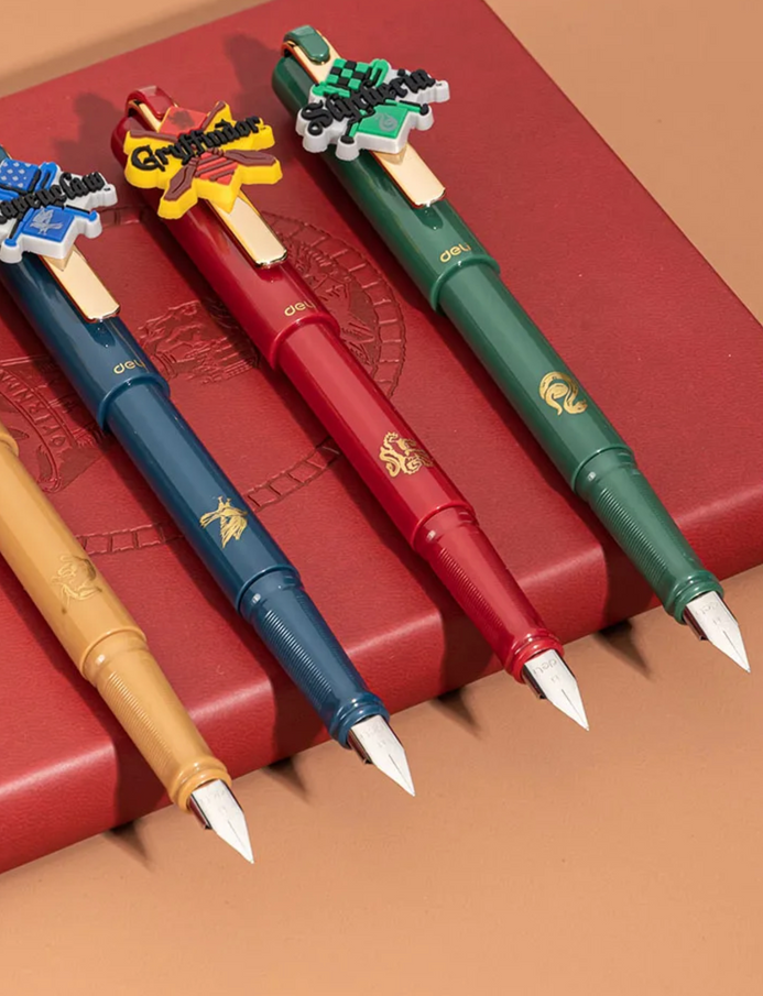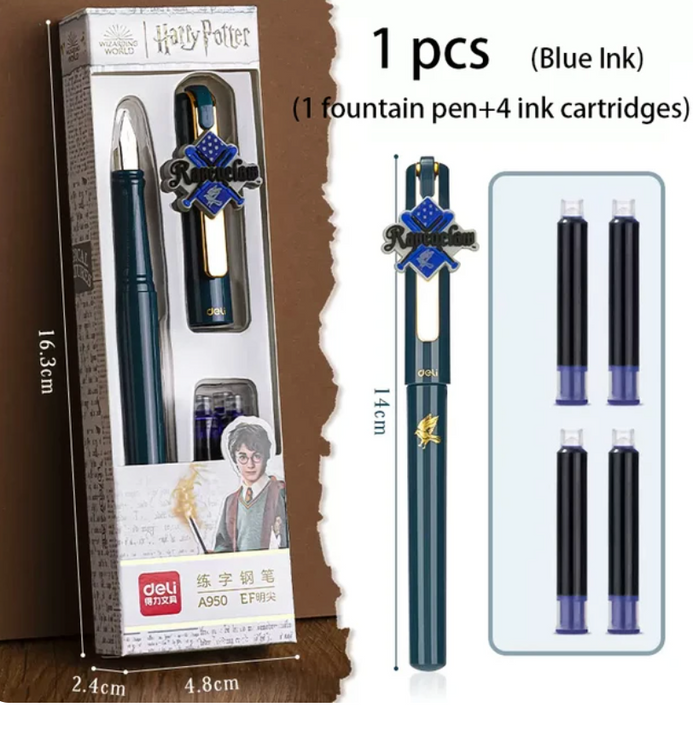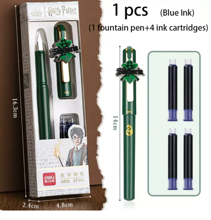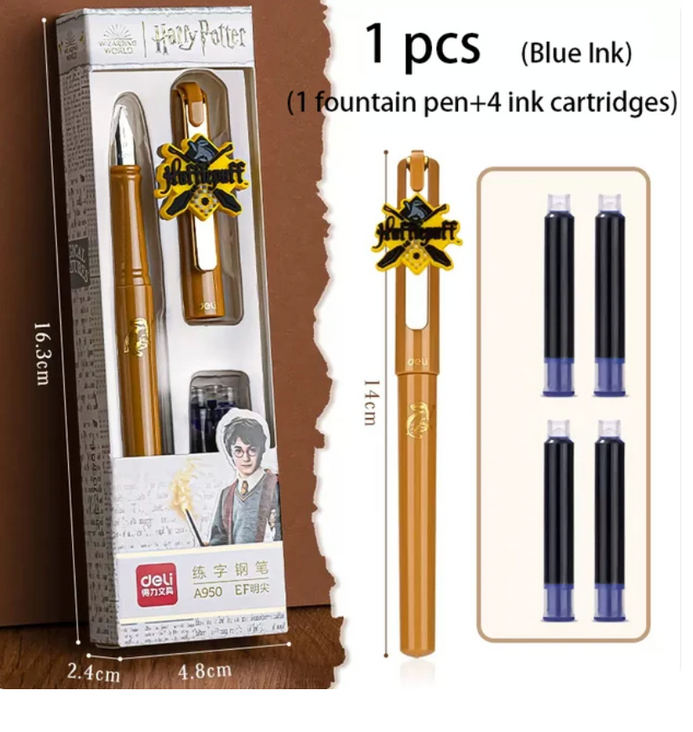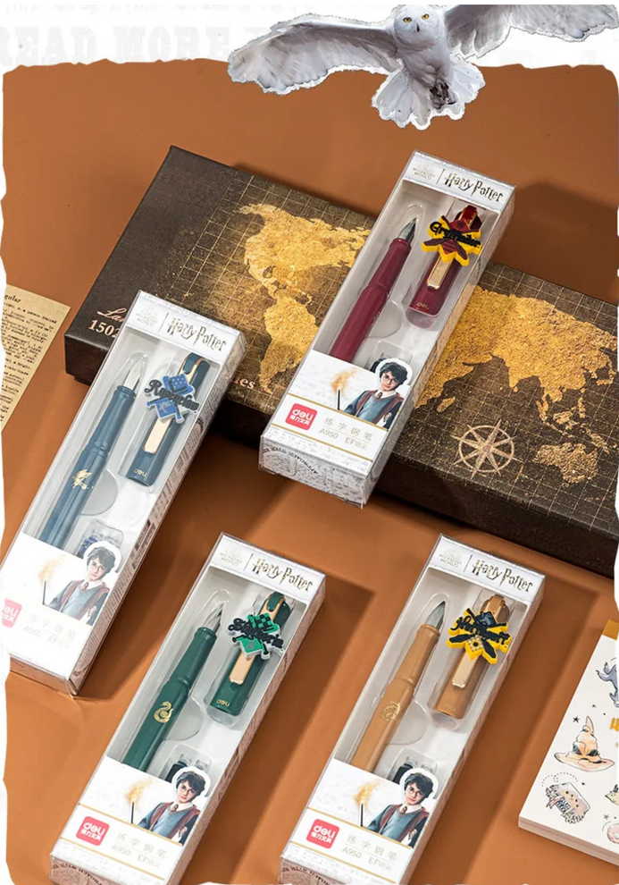 ¡Encantará a cualquier fan de Harry Potter! Este set incluye cuatro plumas estilográficas, cada una representando una casa de Hogwarts. Con sus detalles únicos y elegante presentación, este set es perfecto para coleccionar o usar en la escritura diaria. ¡Escribe tus propias historias mágicas con estilo!