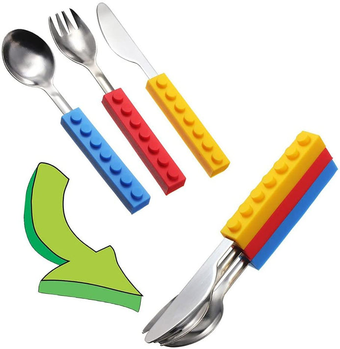 - Cada utensilio cuenta con un lively-color, mango lego-shaped.