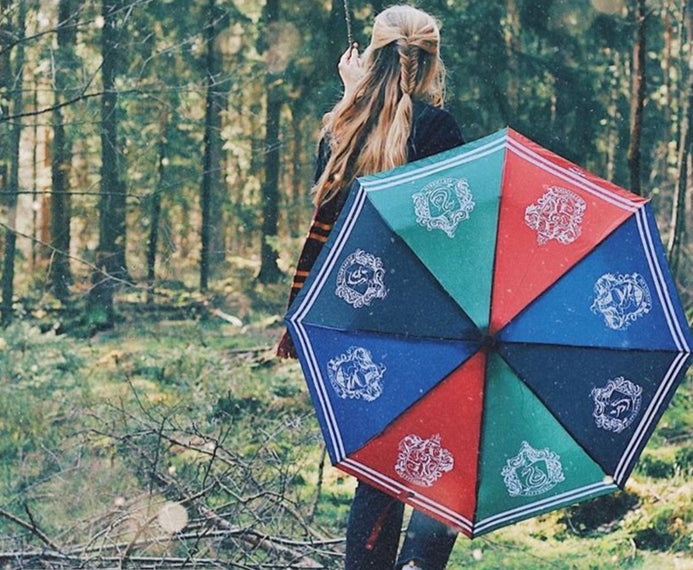Protégete de la lluvia y levanta con orgullo las 4 casas de Hogwarts gracias a este paraguas de Harry Potter
